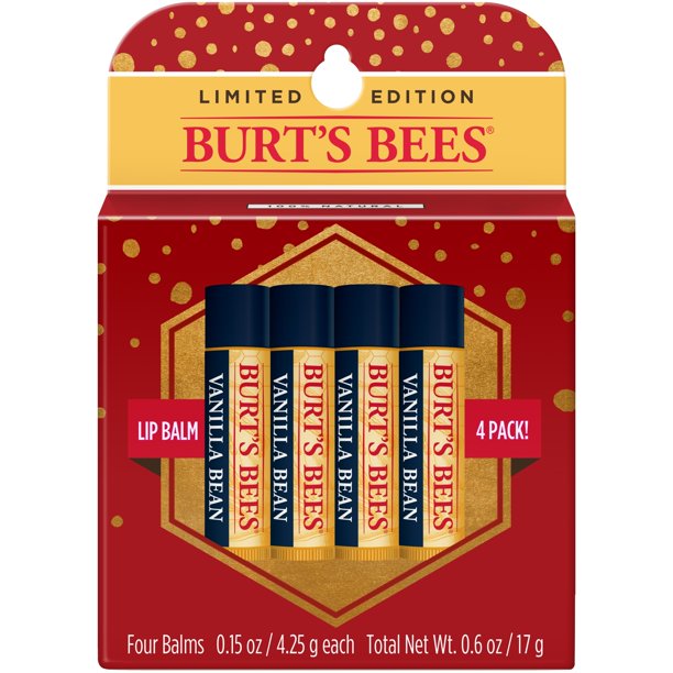 Burt S Bees Vanilla Bean Lip Balm Holiday Gift Set Limited Edition 100 Natural 4 Moisturizing Lip Balms Vanilla Bean In Festive Gift Box Walmart Com
